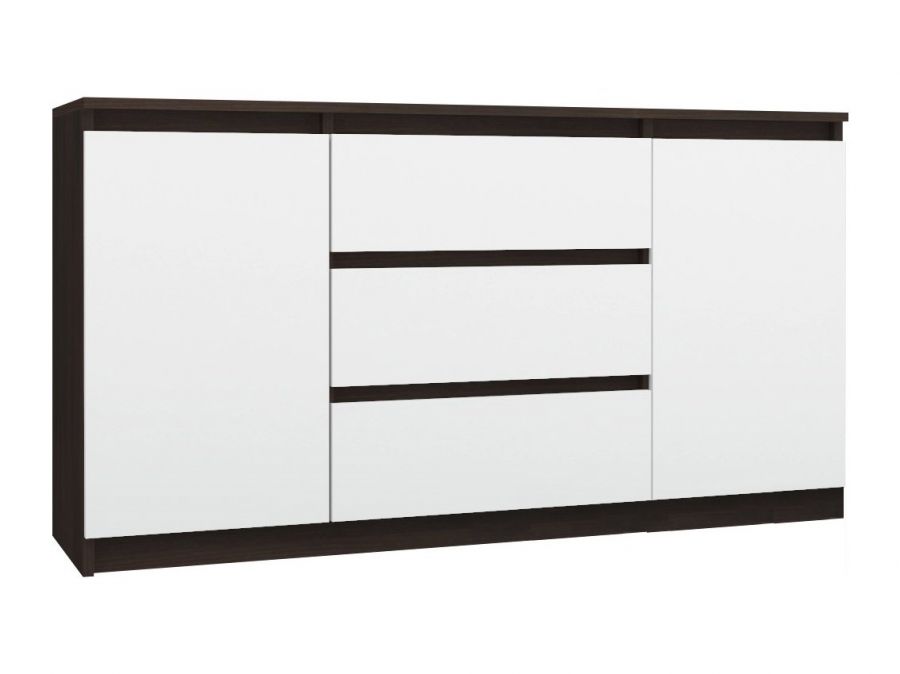 Prezentujemy nową linię mebli bez uchwytów do otwierania. Komoda przeznaczona do salonu, pokoju lub sypialni. Komoda posiada 2 szafki oraz 3 szuflady. Za każdymi drzwiami znajduje się 1 półka czyli 2 przestrzenie do zagospodarowania. Jej szerokość wynosi 120cm.