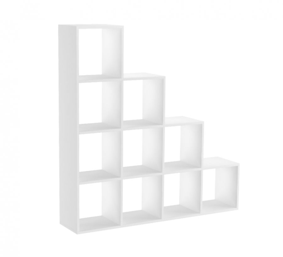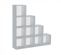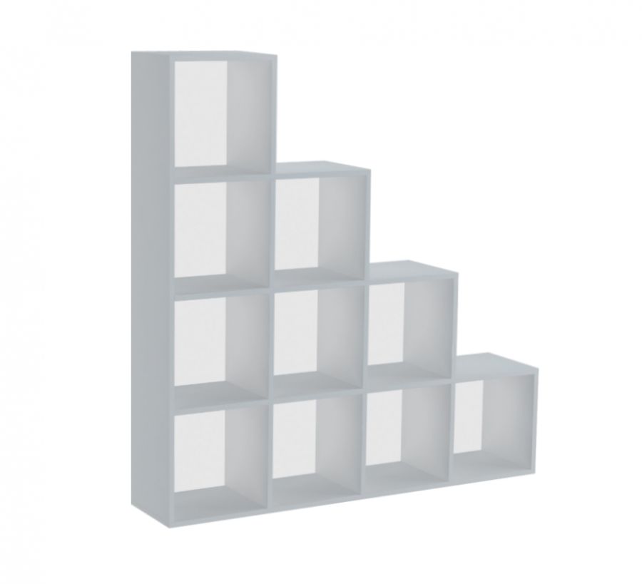 Idealny regał do biura, salonu lub pokoju młodzieżowego. Jego szerokość wynosi 138 cm. Może posłużyć do przechowywania segregatorów bądź też jako miejsce na książki i pamiątki lub zabawki. W regale do dyspozycji mamy 14 półek czyli do zagospodarowania mamy 10 wnęk. Sprawdzi się jako stolik nocny, regał pokojowy, może być przegrodą pokoju, ponieważ wygląda jednakowo dobrze z każdej strony. Dostępny w sześciu modnych kolorach. Regał nie posiada pleców.